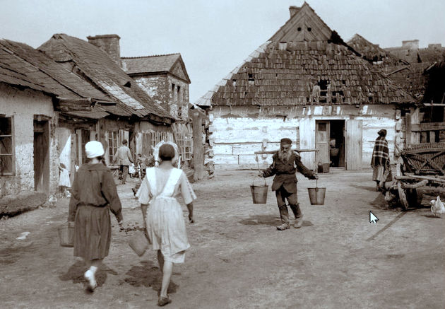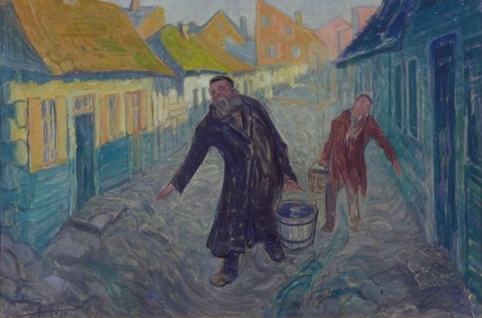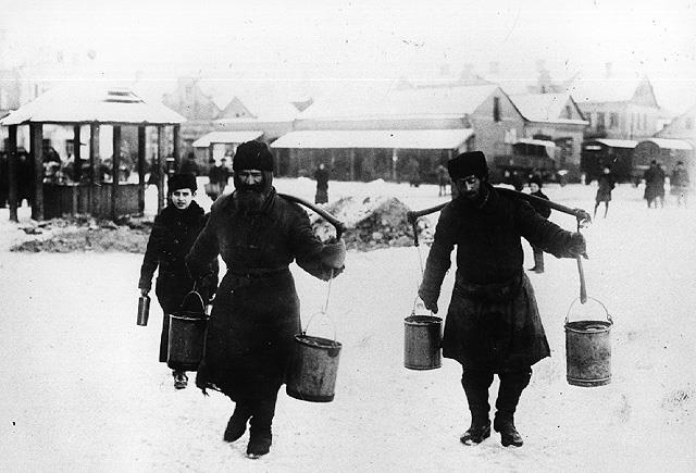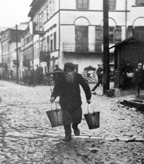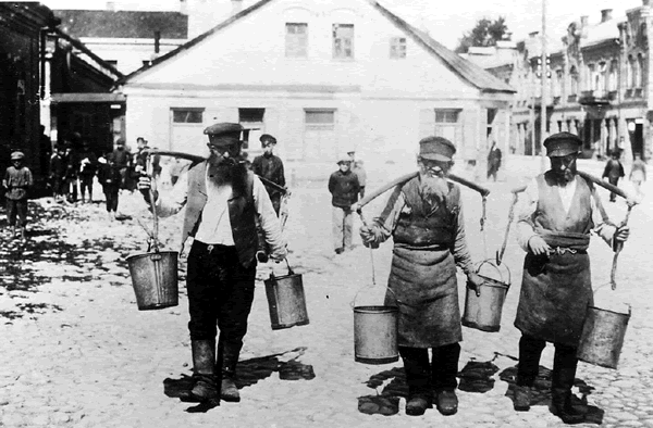 Pirmojo pasaulinio karo metais žydų vandens nešikai aprūpindavo vandeniu namus, kuriuose jis nebuvo įvestas. Fotografuota vokiečių karių.