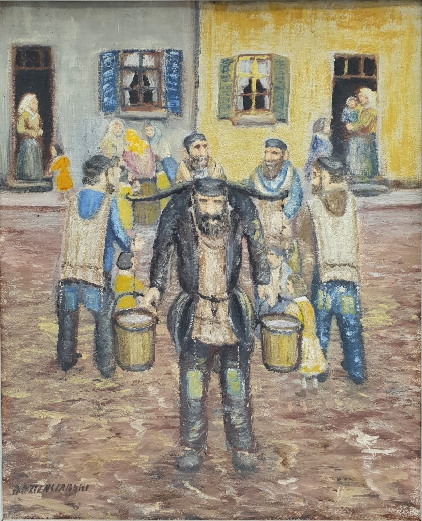 O šis – iš Lenkiškojo Staszowo 1935 m. Šio vandens nešėjo tėtis ir senelis dirbo tą patį darbą (nuotrauka rodyta parodoje Toronte)
